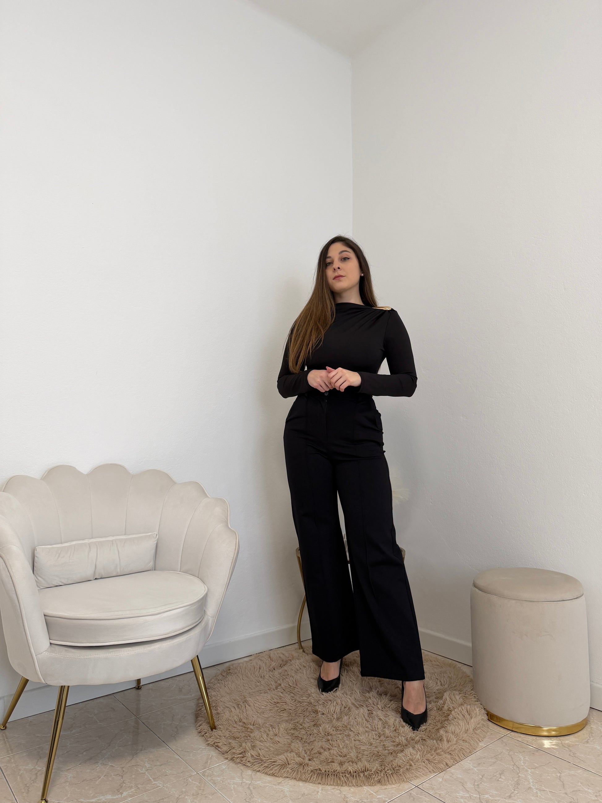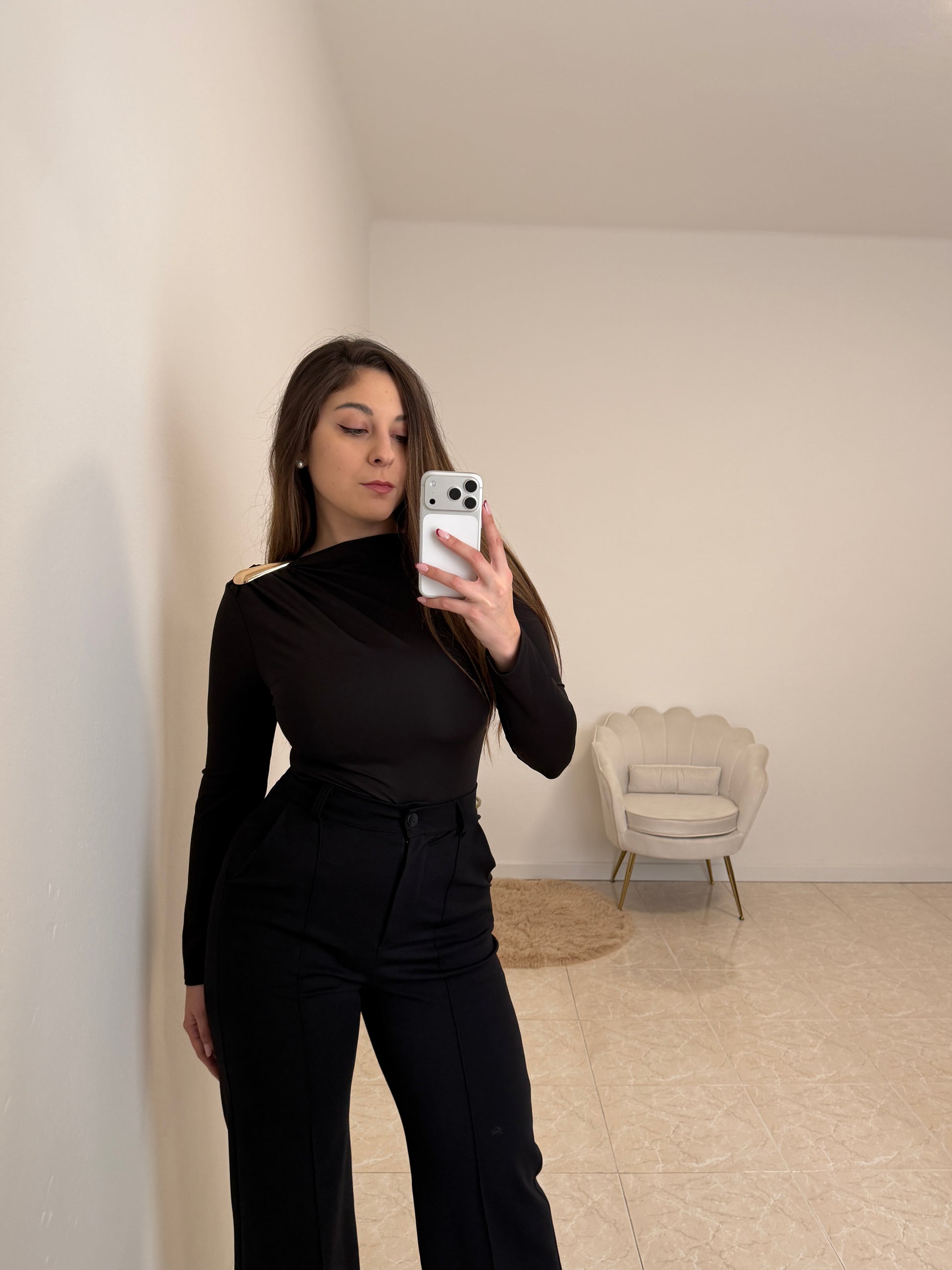 Body con dettaglio dorato. Taglia unica, vestibilità fino ad una tg. 44.