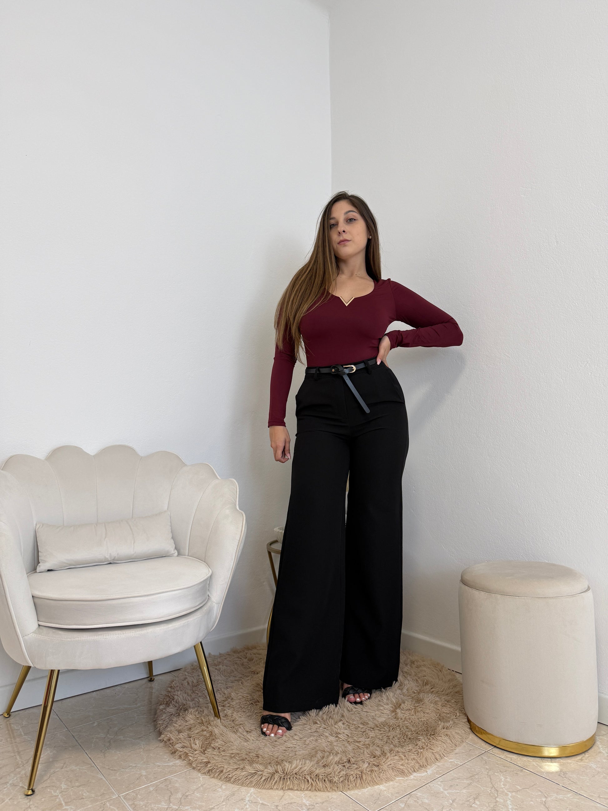 Body a maniche lunghe con v dorata. Taglia unica, vestibilità fino ad una tg. 44.