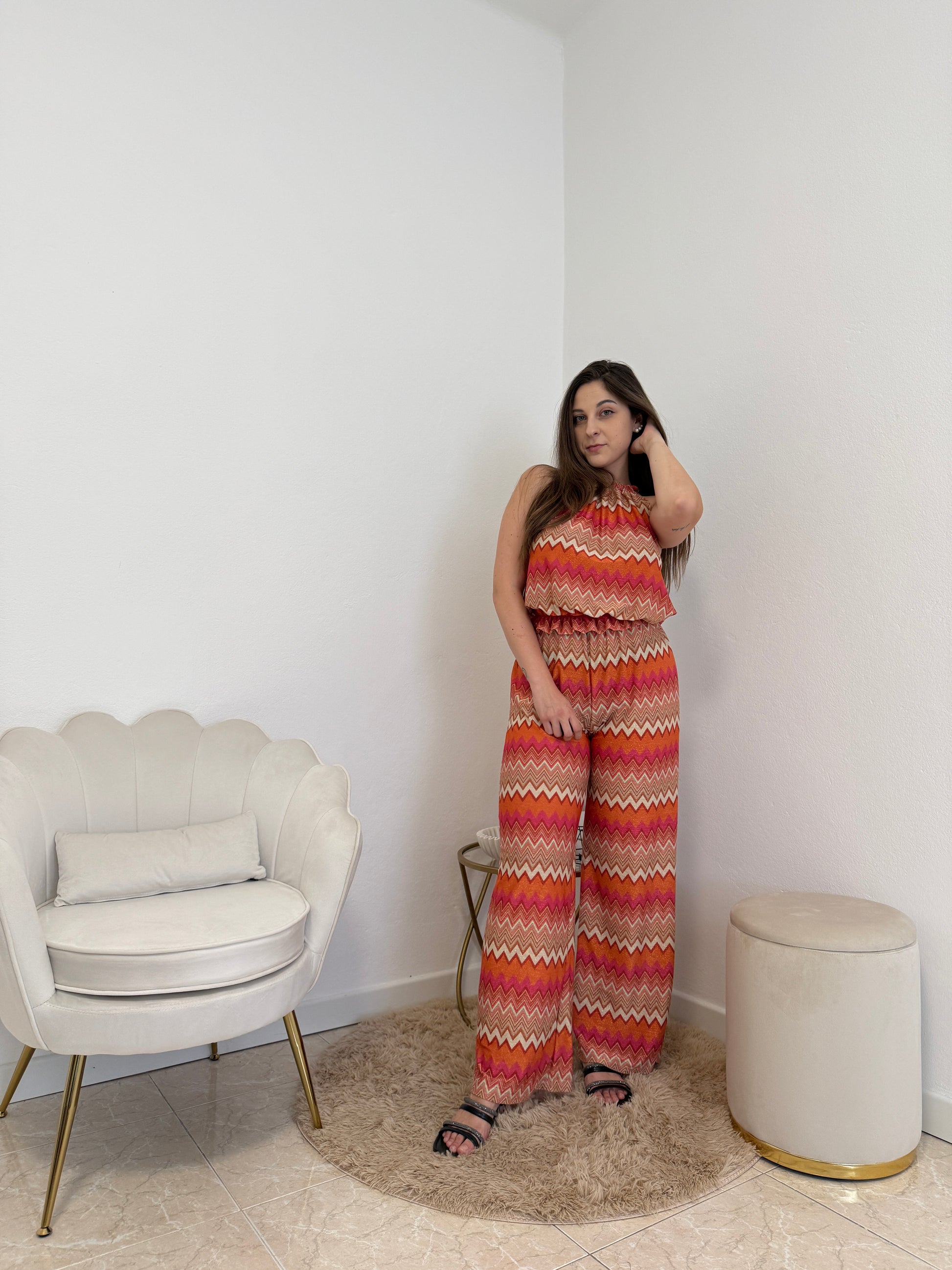 Completo in lurex composto da top e pantalone morbido con elastico in vita. Taglia unica, vestibilità fino ad una tg. 44.