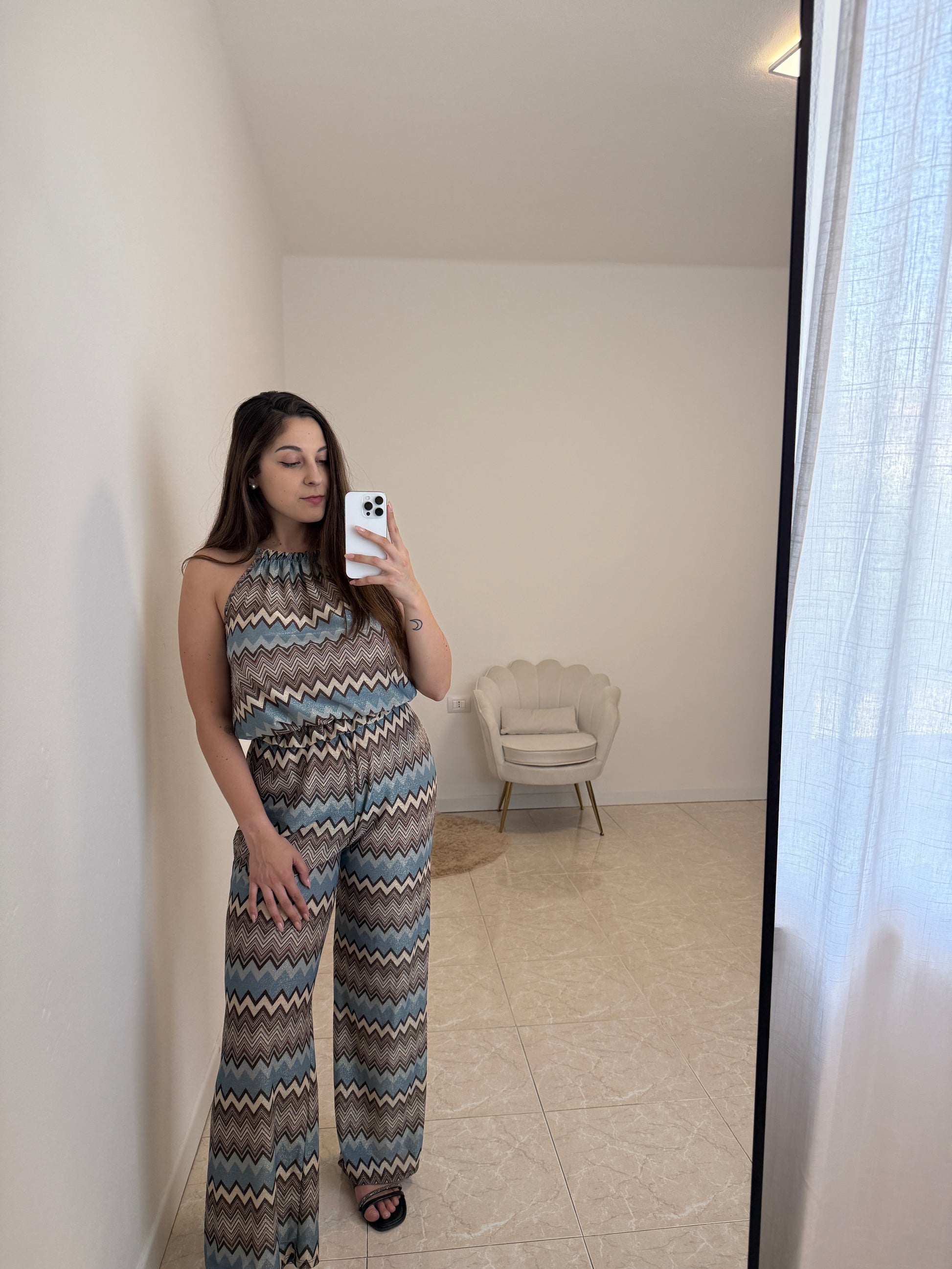 Completo in lurex composto da top e pantalone morbido con elastico in vita. Taglia unica, vestibilità fino ad una tg. 44.