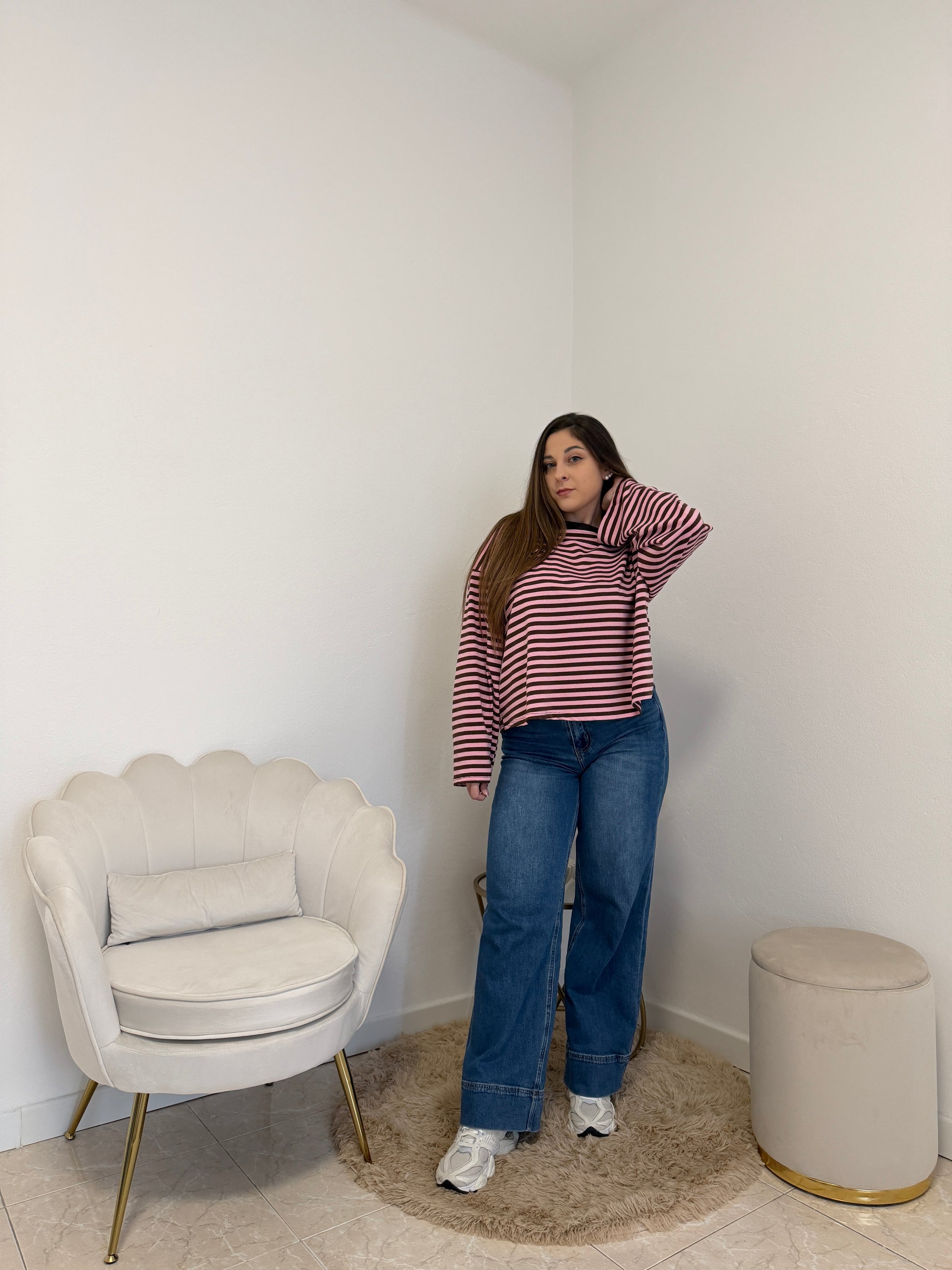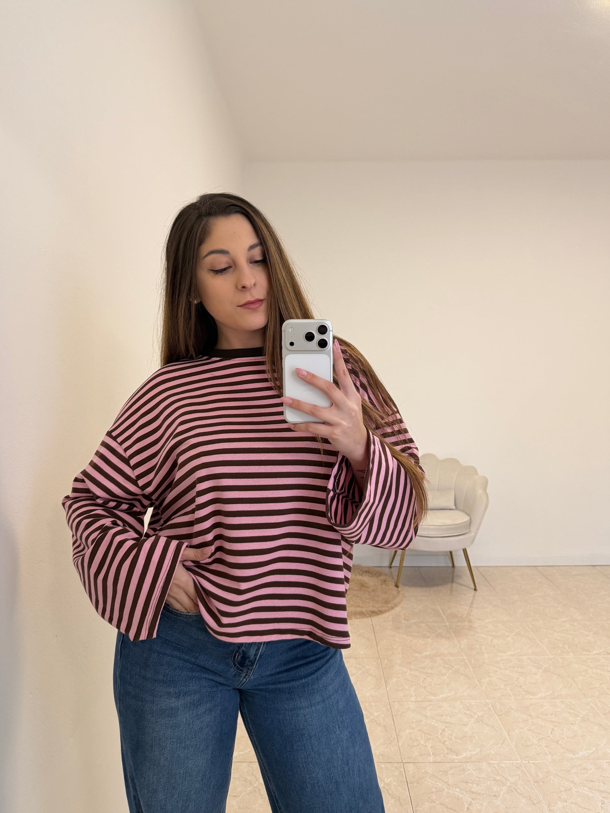Maglia a righe oversize con maniche ampie. Taglia unica, vestibilità fino ad una tg. 48.