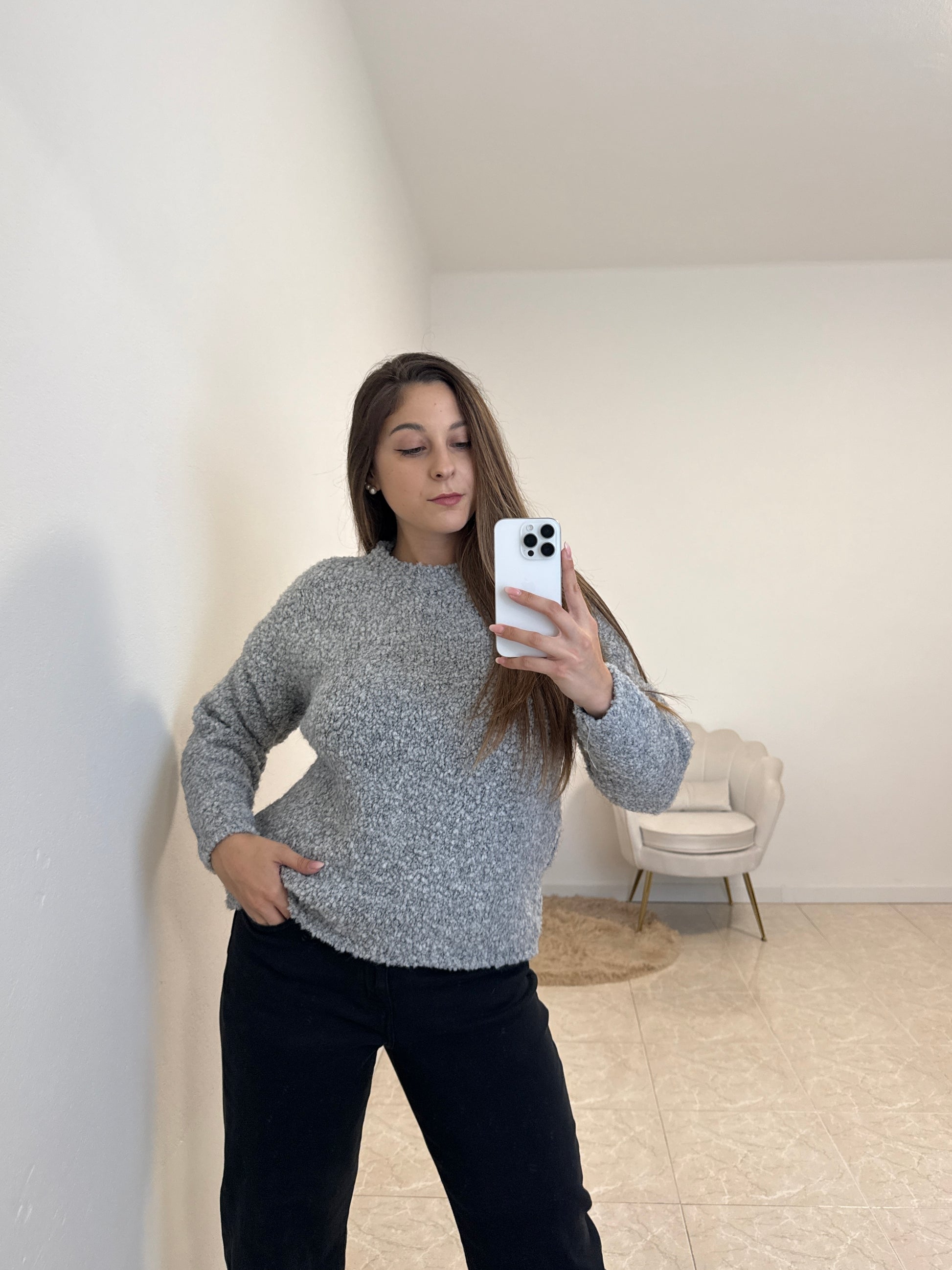 Maglione caldo a girocollo in tessuto bouclè. Taglia unica, vestibilità fino ad una tg. 44.
